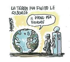 Ogni essere vivente attinge risorse dal proprio pianeta per sopravvivere: acqua, cibo, terra, aria pulita, minerali sono tutti beni che la terra non solo ci mette a disposizione ma che è anche in grado di rigenerare attraverso complessi cicli biogeochimici. I tempi di completamento di tali cicli sono estremamente variabili e, se usiamo come unità di misura il tempo di una vita umana, possiamo raggruppare le risorse che essi producono e di cui necessitiamo per sopravvivere in tre grandi gruppi: quelle che si rigenerano ininterrottamente come il sole, il vento, le maree ecc. e che per questo vengono dette “risorse rinnovabili”, ossia si rinnovano costantemente nell’arco di una vita umana e sono quindi sempre a nostra disposizione (almeno per il momento); quelle che hanno bisogno di tempi relativamente lunghi ma sempre calcolabili nell’arco di una vita umana, come l’acqua o il suolo, e che vengono per questo indicate come “risorse parzialmente rinnovabili”: risorse da impiegare con parsimonia, facendo attenzione a non usarne di più di quanto il loro ciclo ci garantisca; quelle che hanno bisogno di tempi infinitamente lunghi, molto superiori al tempo di una vita umana, come i combustibili fossili, e che vengono per questo designate come “risorse non rinnovabili”: una volta esaurite saranno scomparse per sempre, almeno in termini umani. Per questo l’impiego di tali risorse dovrebbe essere l’eccezione, non la regola.